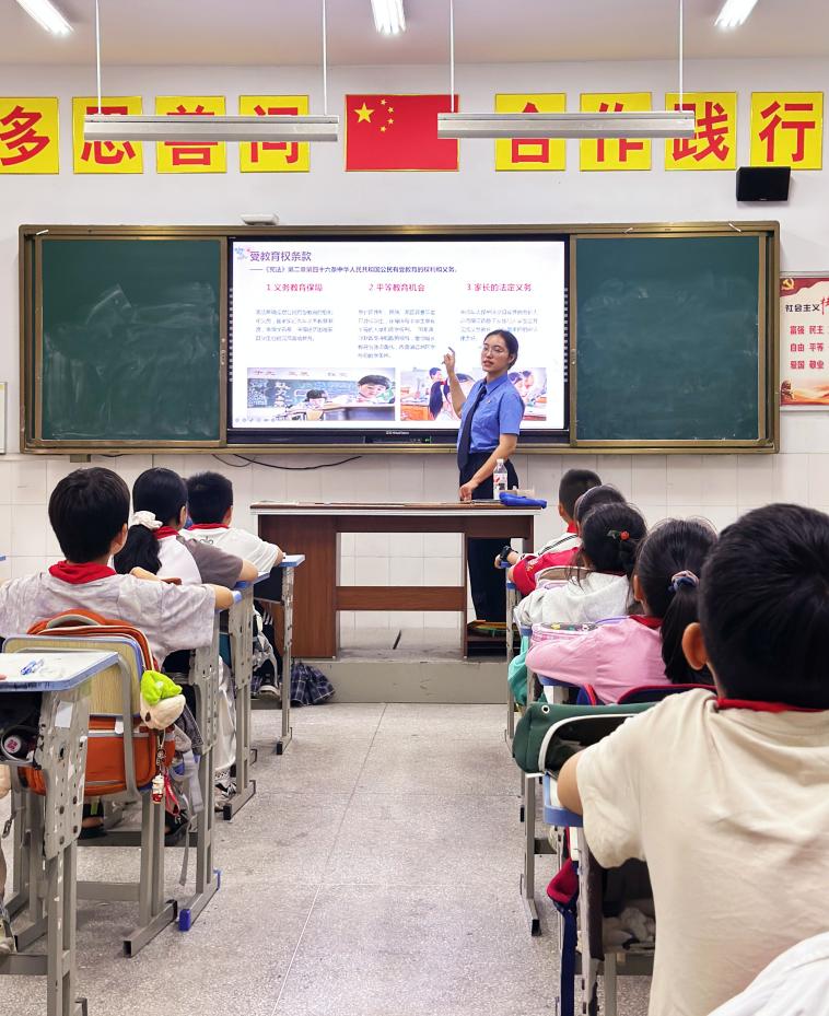为进一步强化青少年法治观念,9月25日,郊区人民检察院干警应邀来到郊区新建中心学校,给孩子们带来一堂生动的法治课。