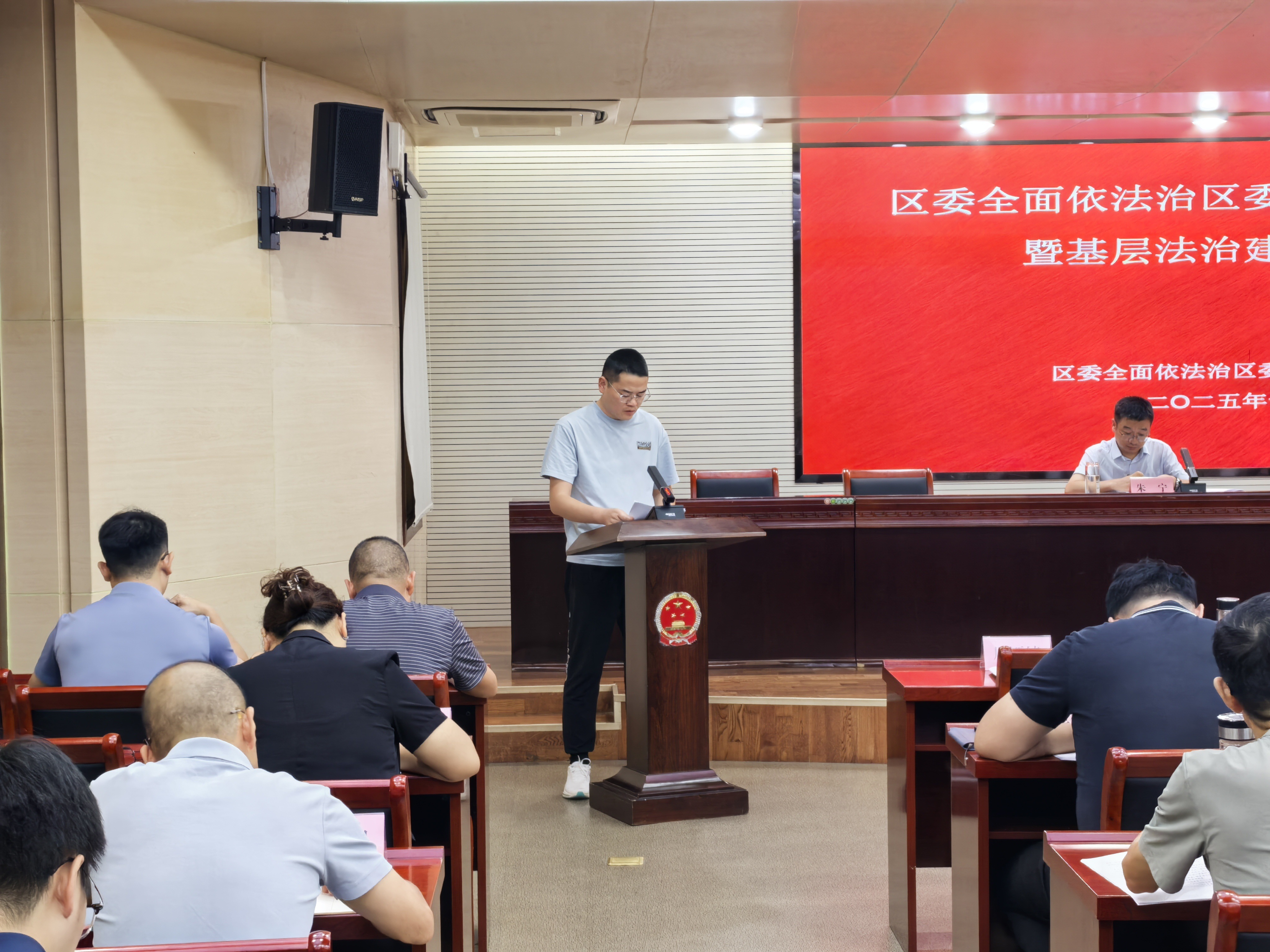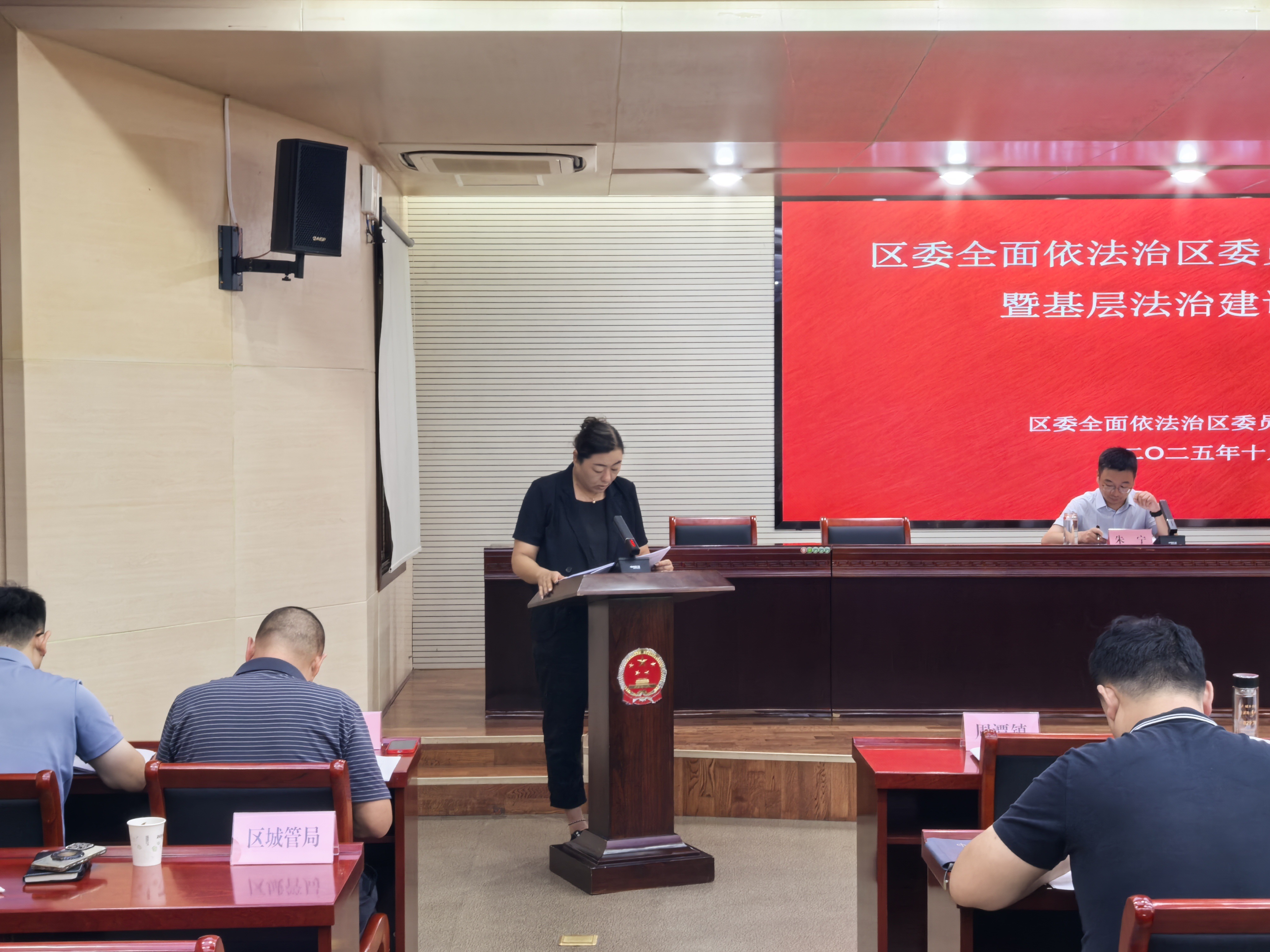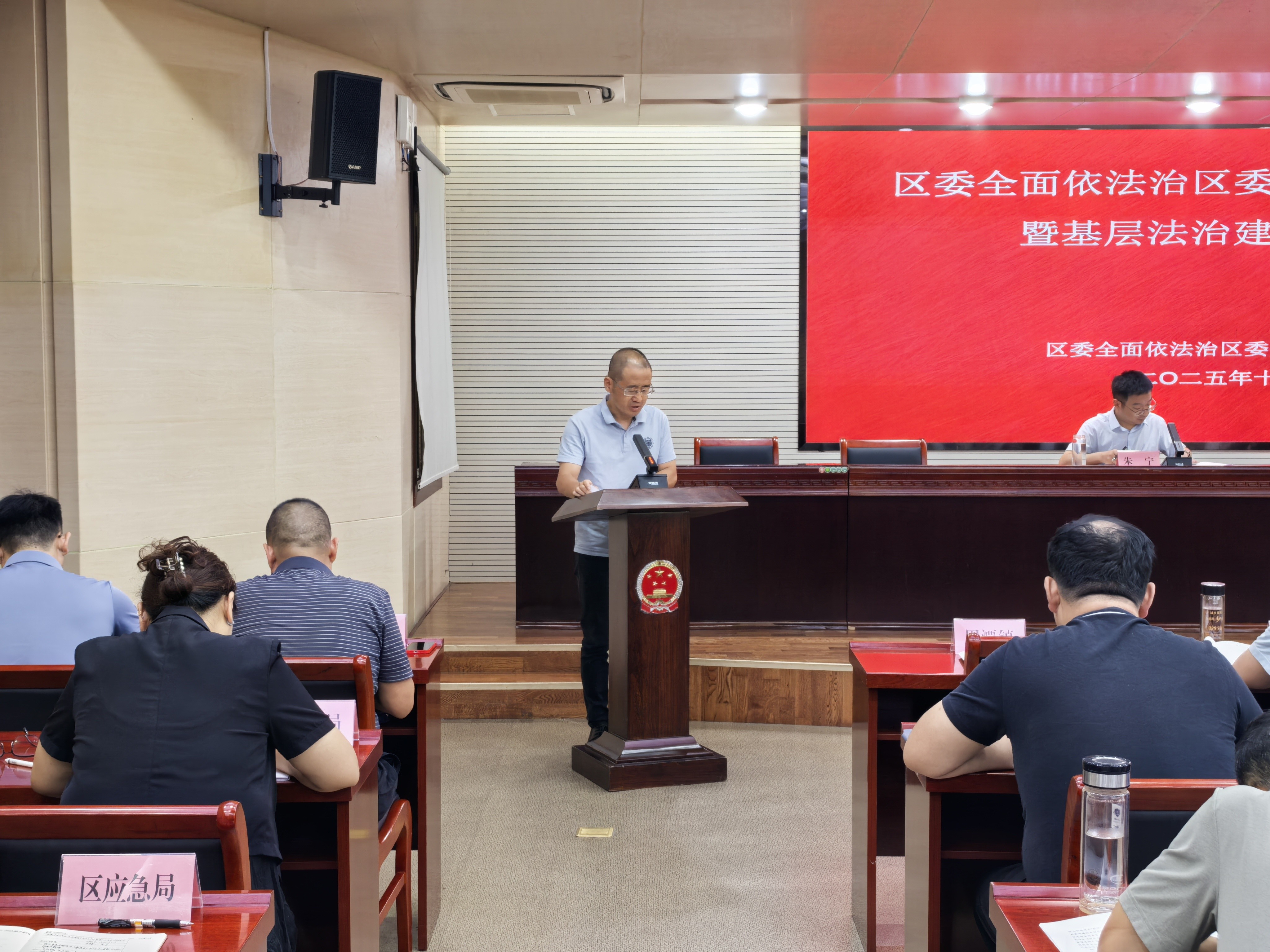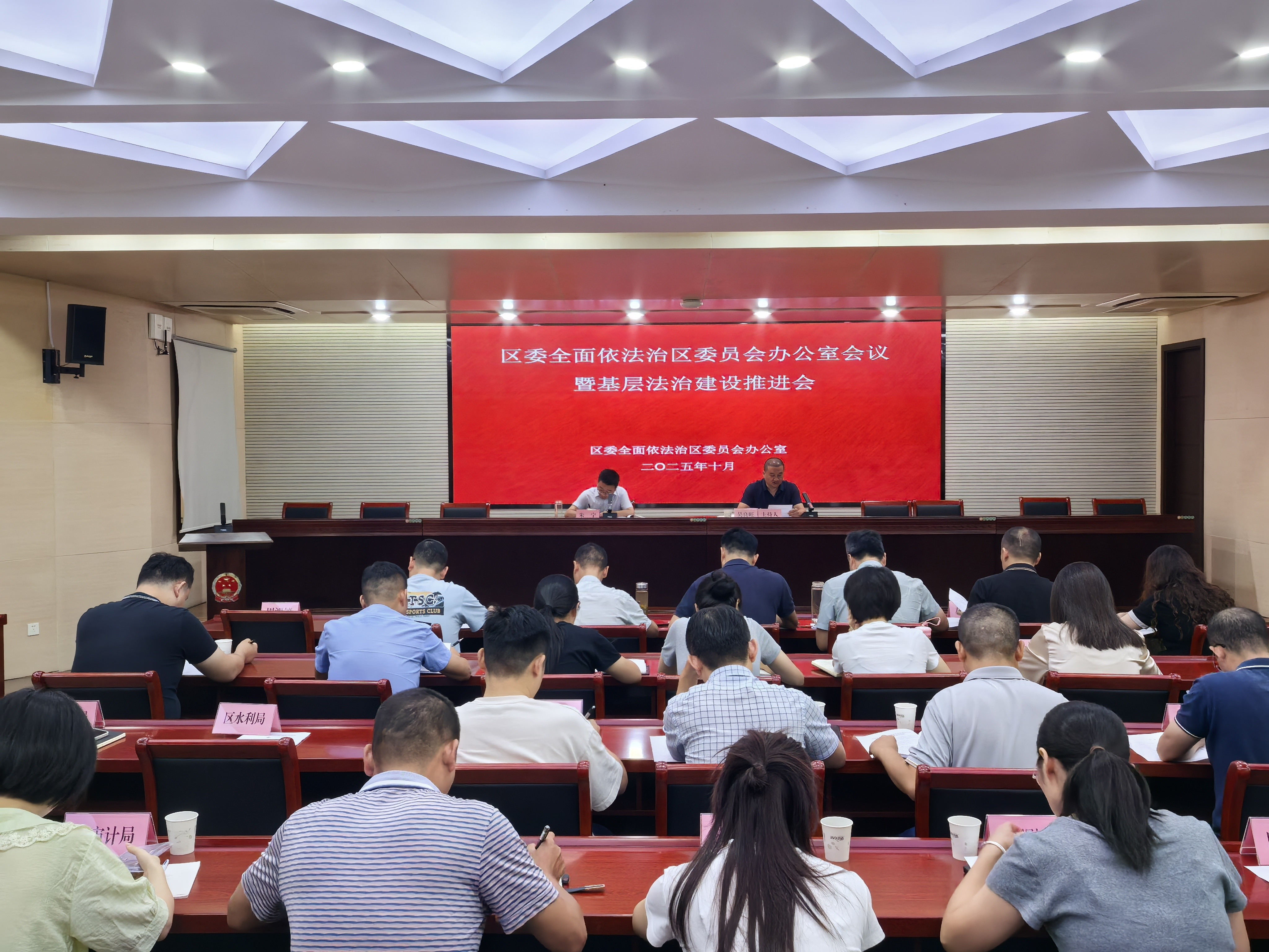 为进一步凝聚法治共识,夯实基层基础,全面推动依法治区工作迈向新台阶,10月10日下午,我区组织召开区委全面依法治区委员会办公室会议暨基层法治建设推进会。会议由副区长吴良旺主持,区委政法委书记、区委全面依法治区委员会办公室主任朱宁出席会议并作讲话。区委全面依法治区委员会成员单位、区直有关部门、各乡镇办、区经开区分管负责同志及相关人员参会。