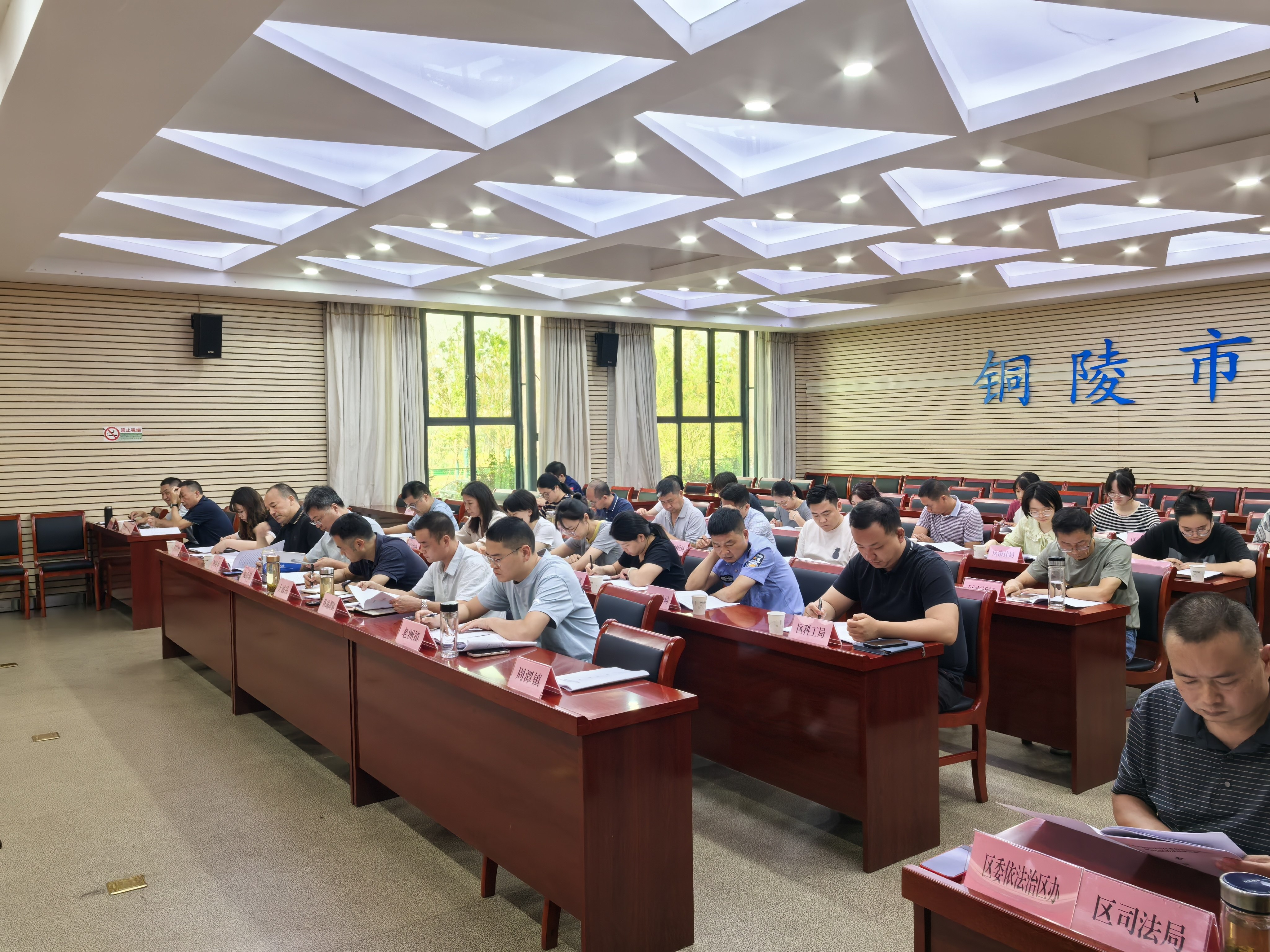 会议传达学习了市委全面依法治市委员会办公室会议暨基层法治建设推进会的重要精神。区城市管理局、区应急管理局、老洲镇的分管负责同志就本单位在推进基层法治建设方面的探索实践、特色亮点及工作成效作了现场汇报。