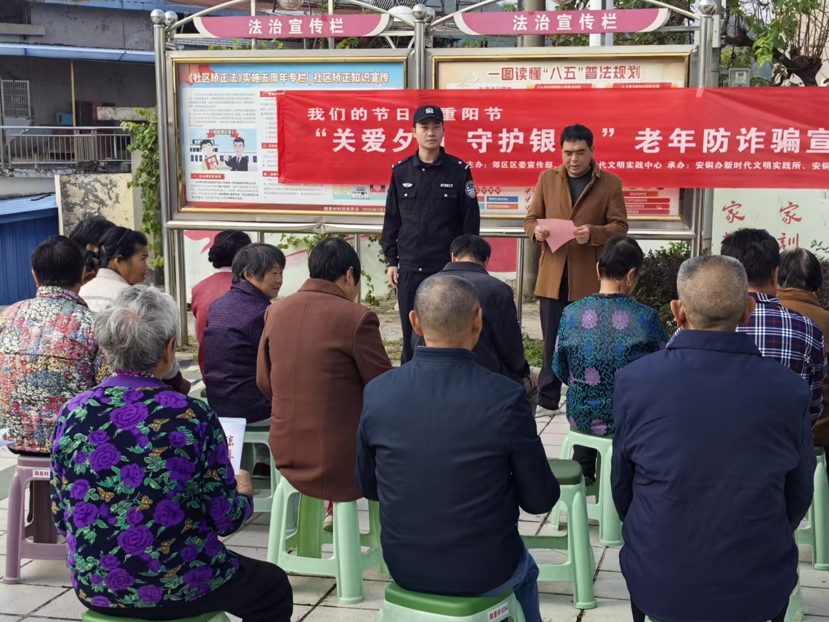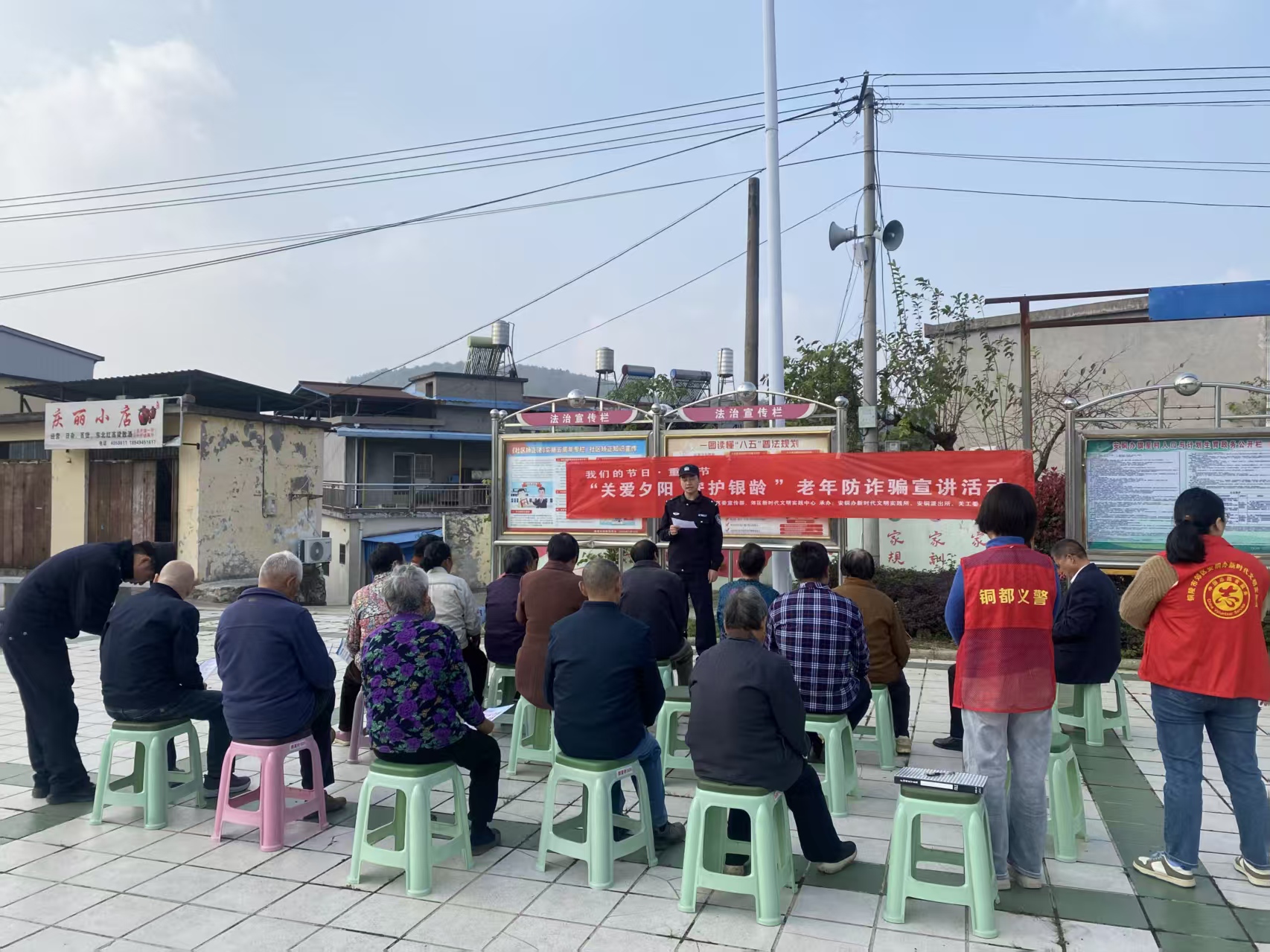10月27日,铜陵市公安局郊区分局安铜派出所走进旗星村,开展“关爱夕阳 守护银龄”防诈宣传活动。民警针对老年人防范意识较弱的特点,现场通过发放宣传单、现场讲解等方式,揭露电信诈骗和养老诈骗常见手法,提醒老人不贪小利、不泄信息,提高防范意识。