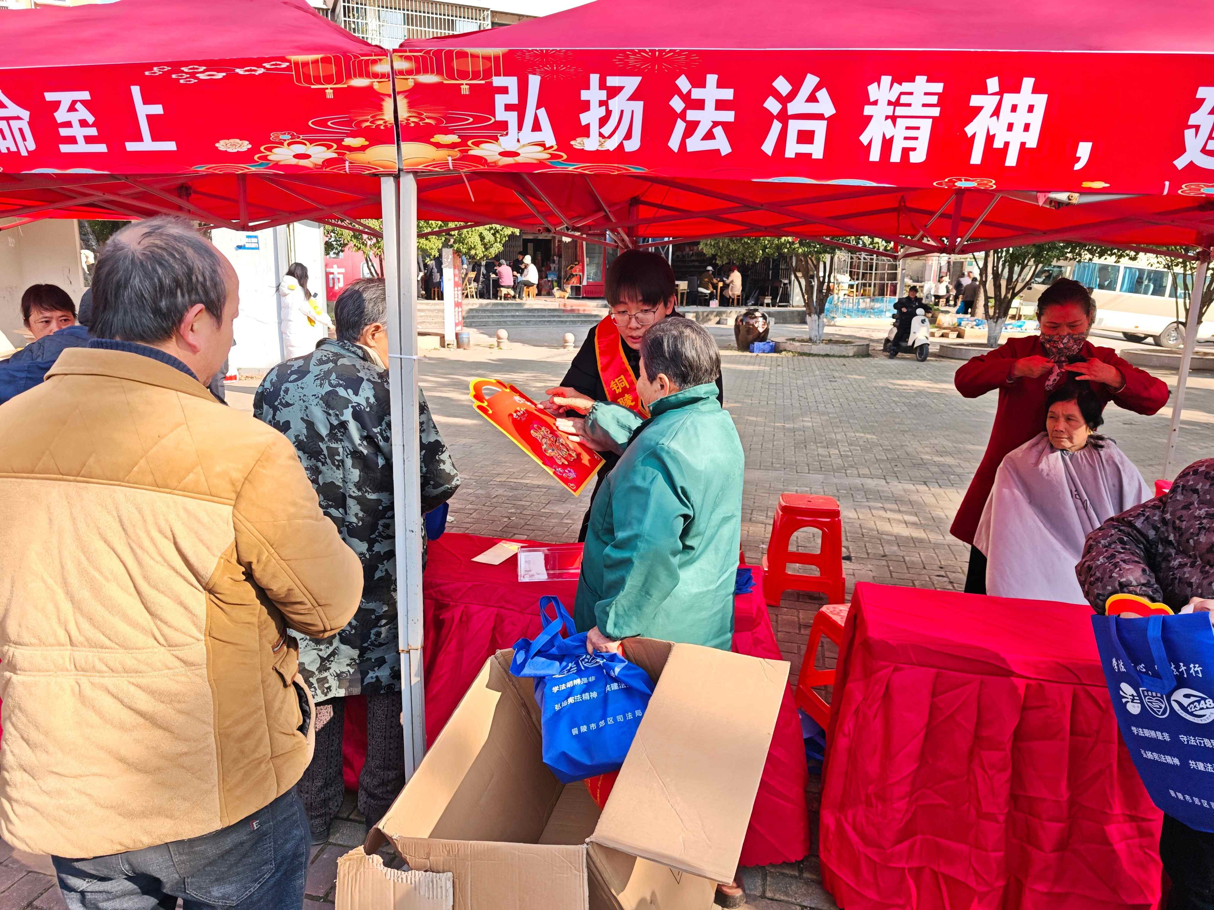 春节将至,年味渐浓。为切实增强群众法治意识,提升群众安全感、政法机关满意度,筑牢节前安全防线,1月16日上午,郊区司法局以“弘扬法治精神 建设平安家园”为主题,走进大通镇梦苑社区开展年前法治宣传活动,将满载法律知识的“新春礼包”送到群众手中,为即将到来的马年春节营造了平安和谐的法治氛围。