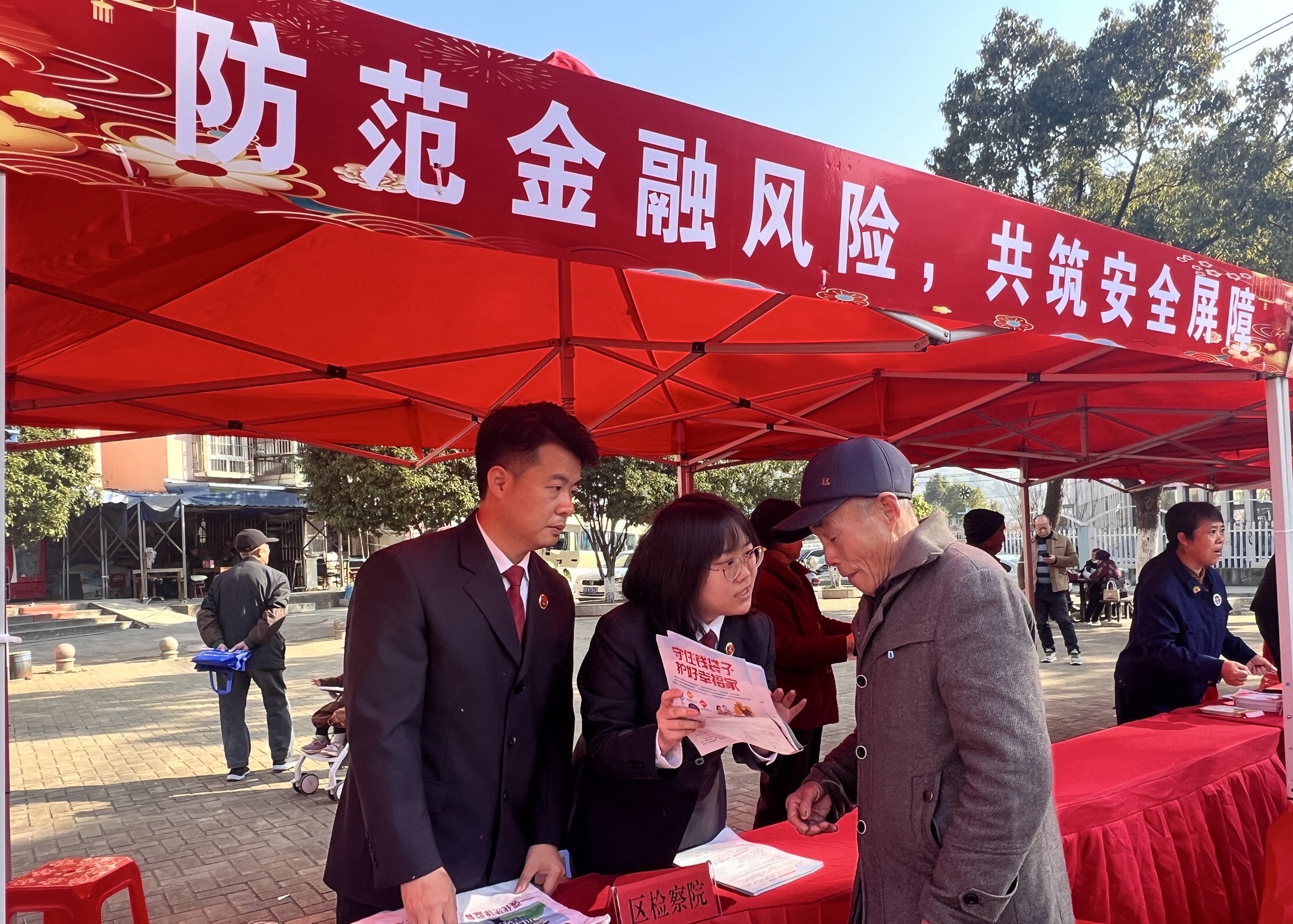 全面普法,提升反诈防非意识。活动现场检察干警们不仅悬挂了醒目的宣传横幅,还向现场群众分发了图文并茂的宣传单页,宣传单页配合了生动形象的漫画图解,单页内容涵盖了电信诈骗的常见手段,如何预防电信诈骗;非法集资的常见手段,规避非法集资陷阱的口诀等,吸引了大量群众驻足传阅。 精准宣讲,重点人群量身定制。针对岁末年初资金流动频繁、老年人群易成为犯罪目标等特点,检察干警们主动走到老年朋友身边,结合办理过的“高息理财”“情感维护”等为诱饵的典型案例、揭露犯罪分子们常用话术,叮嘱老年朋友莫上当,护好自己的钱袋子。同时检察干警们也提醒围观的年轻朋友需警惕网络刷单、区块链、云养殖等层出不穷的诈骗手段。 延伸服务,积极贡献检察力量。郊区人民检察院将继续丰富普法宣传方式,结合“法治副校长”“检察开放日”等活动,强化责任担当,积极与各单位共同织密“防非”防护网,提升辖区居民对金融违法犯罪行为的识别能力和自我保护意识,营造节日期间全民防非、主动拒非的良好社会氛围,共同维护、全力保障人民群众度过一个安定、祥和的新春佳节。