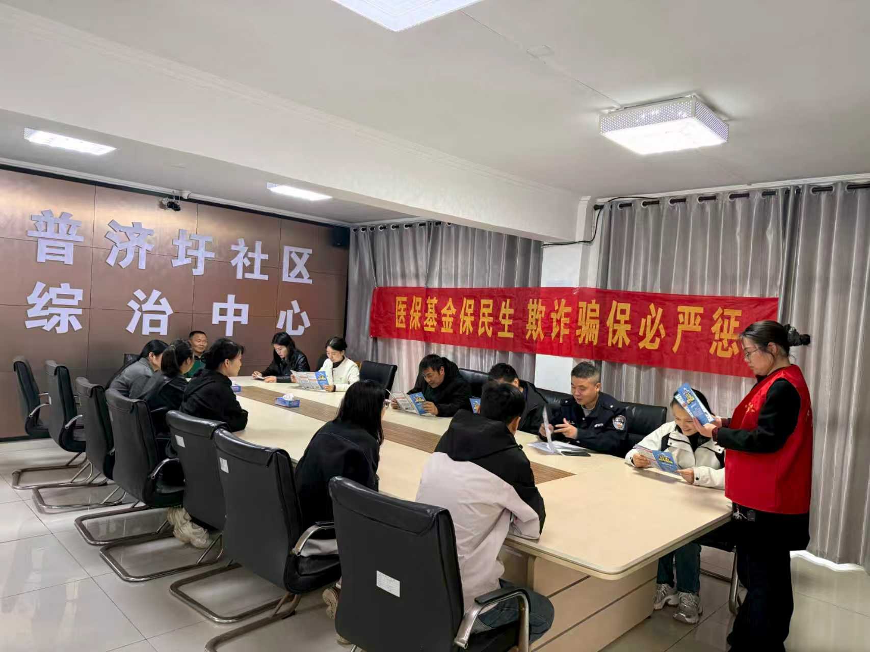 一、集中宣讲敲警钟,筑牢思想防线 在普济圩社区综治中心的会议室内,一场医保基金监管专题宣讲会正在开展。社区工作人员联合民警,向参会居民代表、网格员开展集中宣传。工作人员向参会人员发放医保政策宣传手册,结合真实案例,用通俗易懂的语言,详细解读了《医保基金使用监督管理条例》的核心内容,重点讲解了虚构医药服务、伪造票据、虚假住院等欺诈骗保行为的具体表现形式及法律后果,明确告知居民医保基金是群众的“看病钱”“救命钱”,任何单位和个人都无权侵占、挪用。民警也结合工作实际,强调了欺诈骗保行为的查处力度,引导大家自觉抵制欺诈骗保行为,主动参与到医保基金监督中来。 二、入户宣传进家门,政策送到心坎里 在专题宣讲会开展的同时,五洲村志愿者们深入居民家中,开展入户走访宣传。志愿者身穿红马甲,与居民面对面交流,向老年居民、重点人群耐心讲解医保报销政策、异地就医流程、医保基金使用规范等内容,提醒居民妥善保管自己的医保凭证,切勿将医保卡转借他人,更不要参与诱导住院、虚假购药等违规行为。志愿者们还倾听了居民在医保报销、就医过程中遇到的疑问,现场为居民答疑解惑,让群众在家门口就能了解医保政策、知晓监管要求。 此次医保基金监管宣传活动,通过“集中宣讲+入户走访”的形式,实现了政策宣传的全覆盖、无死角,不仅让居民深刻认识到了医保基金监管的重要性,也提高了居民的医保法治意识和自我保护意识,营造了“人人知医保、懂医保、守医保、护医保”的良好社会氛围。下一步,灰河乡将持续常态化开展医保基金监管宣传工作,引导群众主动参与监督,共同守护好人民群众的“看病钱”“救命钱”。(朱婷婷)