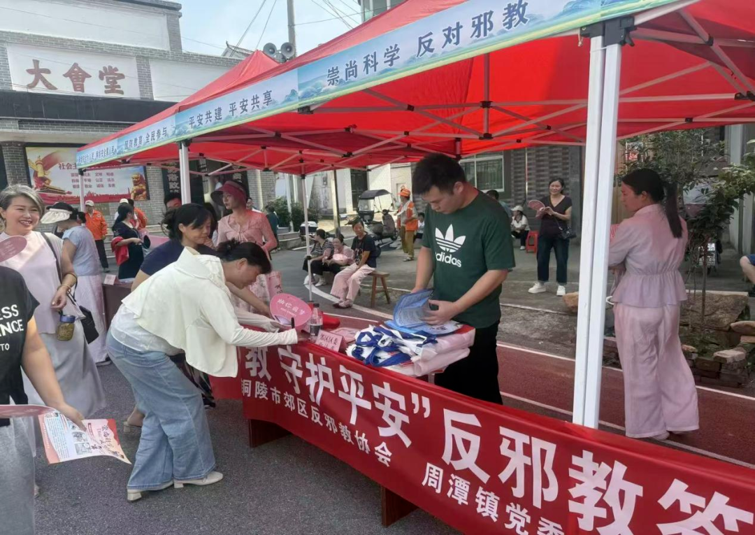 9月19日上午,铜陵市郊区反邪教协会联合周潭镇人民政府,以“文明集市”活动为契机,开展反邪教宣传“进农村”活动,旨在进一步筑牢基层反邪教防线,增强人民群众反邪教意识和法治观念,营造“全民反邪、守护平安”的社会氛围。 活动中,工作人员通过悬挂横幅、发放反邪教宣传单页、面对面讲解身边事例等方式,向群众详细讲解与反邪教相关的法律法规,阐释邪教的本质和危害以及抵御防范邪教的知识。在听完工作人员的讲解后,居民群众们纷纷主动的在“拒绝邪教、守护平安”的反邪教签名活动的横幅上签上自己的姓名,并庄重承诺,将以反邪教为己任,以签名为约定,拒绝邪教,从我做起!通过实际行动来表达对反邪教工作的支持和对邪教说“不”的决心,形成了浓厚的反邪教宣传氛围。 拒绝邪教、从我做起,我们一直在行动!守护平安郊区,提升全民反邪意识,确保反邪从我做起。下一步,郊区反邪教协会将依托网格化管理,进一步筑牢反邪教防线,共同构建平安和谐美好郊区。